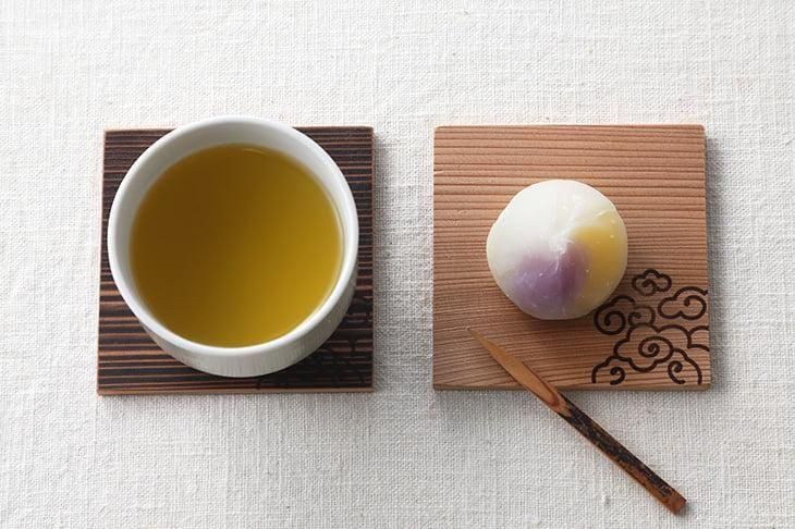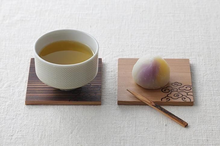 雲紋コースター。雲紋シリーズの仕上げはこれ。一口菓子やグラスも雲紋の上に。