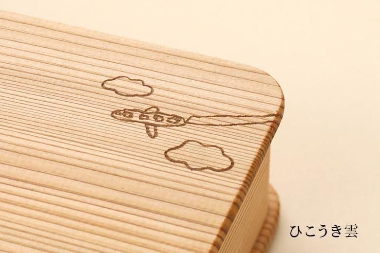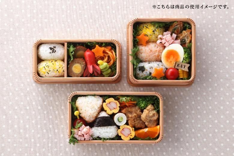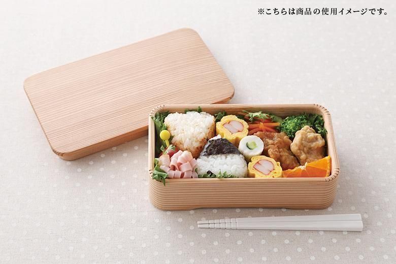 お弁当箱の蓋はいずれも白木で、「鳥の家族」「ひこうき雲」「森とちょうちょ」の3柄からお選びいただけます。取り外し可能で便利な1枚の仕切り付。年中さんや小食の女性向け容量400mlで、軽くて詰めやすい長方形、貼り底・乗せ蓋のコンパクトなサイズ感が人気のお弁当箱です。